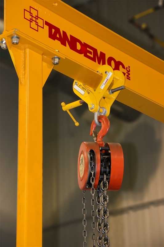 Using a Tandemloc Beam clamp as a temporary attachment point for manual or powered hook-suspended hoists is limited to vertical (90°) lifting. Each Tandemloc vertical Beam Clamp includes a mechanical position lock for added safety when in the closed position.