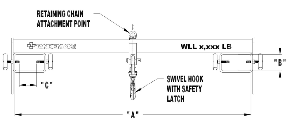 Make your forklift work like a crane. The single swivel hook (with safety latch) provides nearly all the features of a crane at your forks. The two fork design provide added security and stability while the swivel hook allows for a variety of rigging choices for a variety of loading. We included a safety chain attach point and recommend using at a minimum a Proof Coil (Grade 30) Chain as your safety chain (not included). The Tandemloc AS25 Series offer a range of capacities and fork position choices which give you the flexibility needed with your forklift. The extended side plates allow the unit to be stable when not attached and offer ease of installation and simple storage that our competition has not considered.