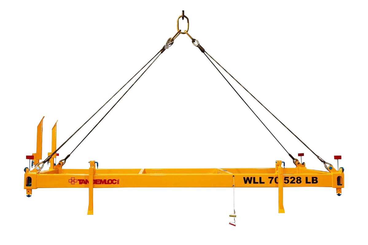 - OPERATION: Simple mechanical operation - no electronics or hydraulics. Twistlocks lock/unlock when the wire rope handle is pulled. One handle locks the bayonets, the other handle unlocks the bayonets. Double horn hook wire rope comes standard with a frame. If you require a four-legged bridle, let us know.